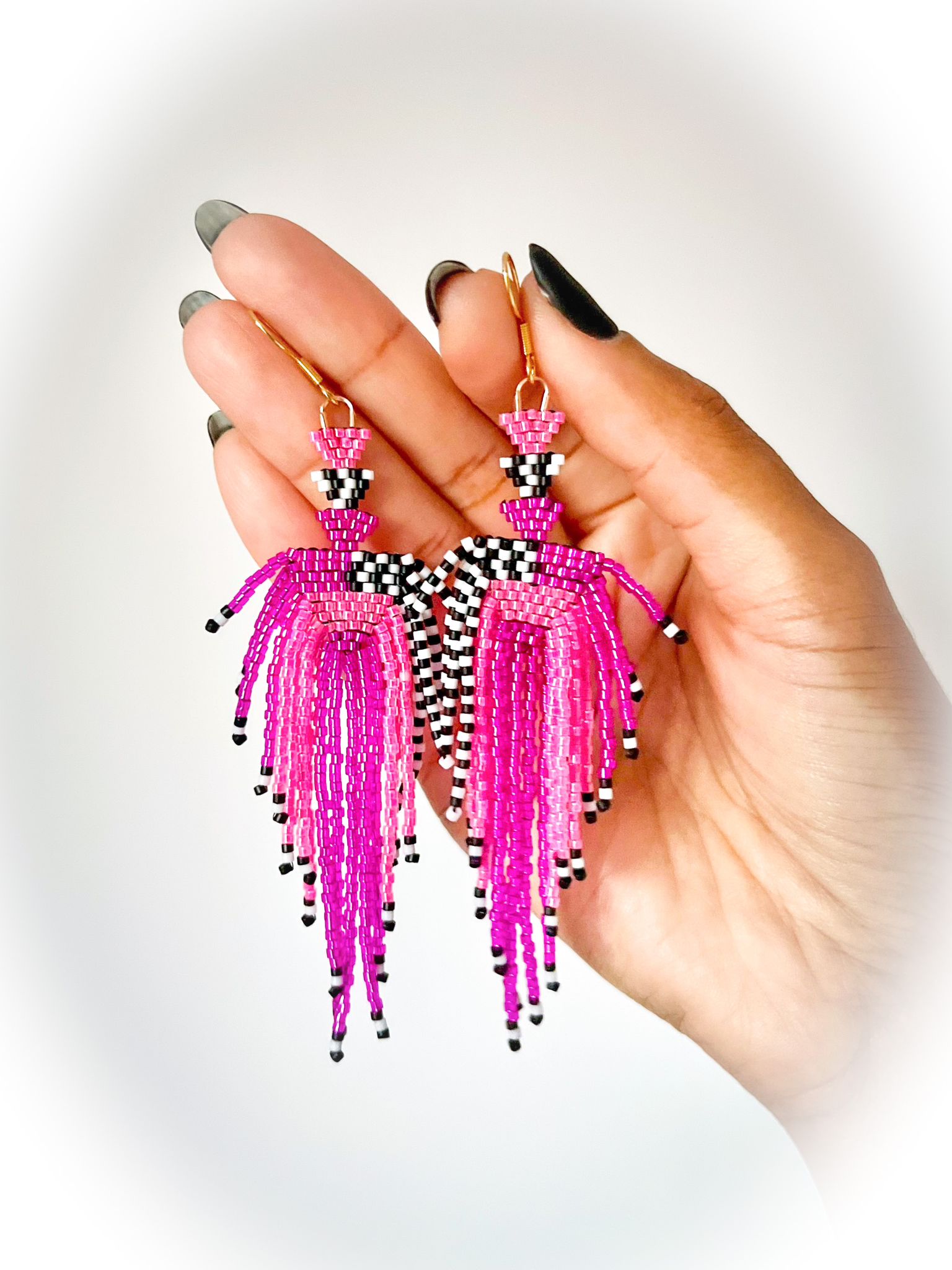 Pendientes hechos a mano con cuentas Miyuki japonesas utilizando la técnica brickstitch. Detalles en acero inoxidable.